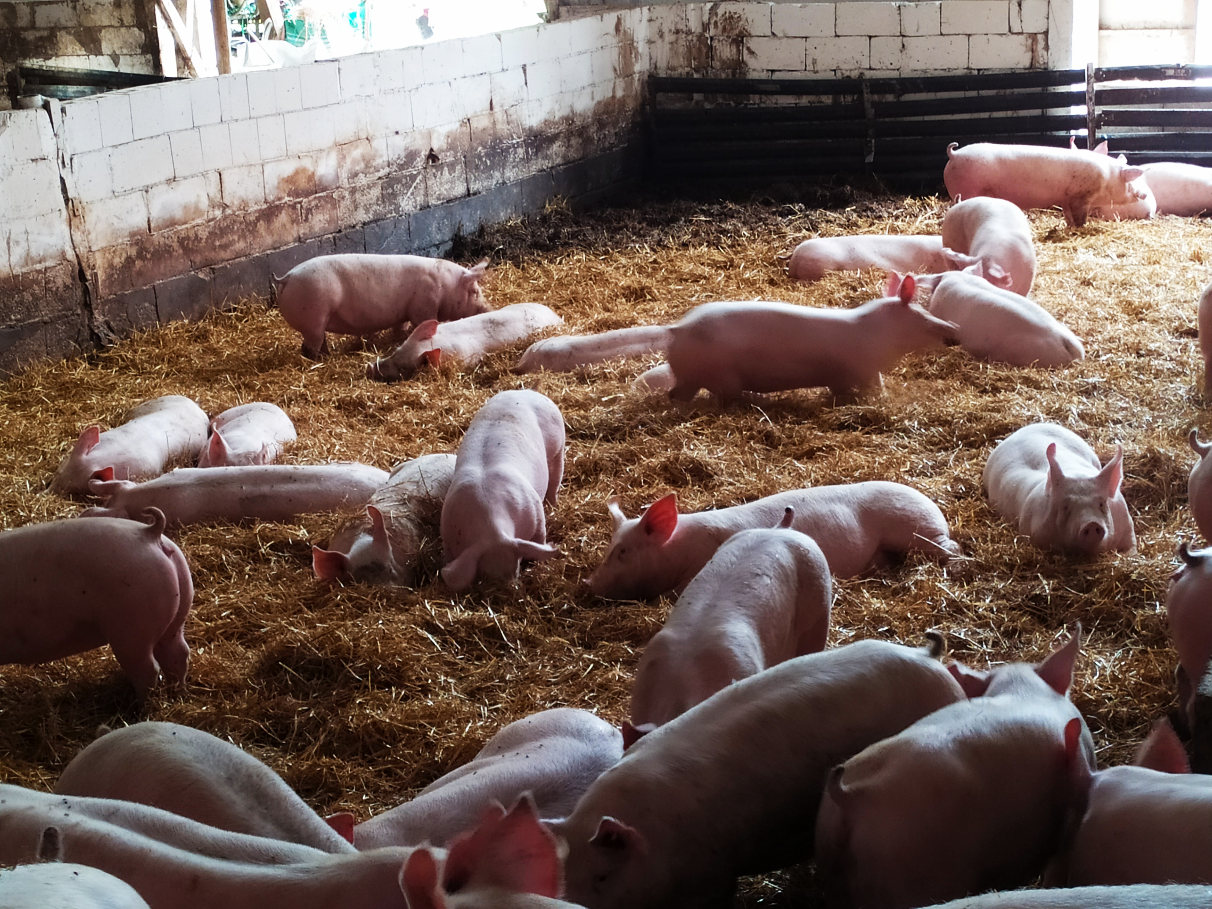 - leben im Außenklimastall im Stroh und bei geöffneten Türen können kleine und große Besucher die Schweine anschauen